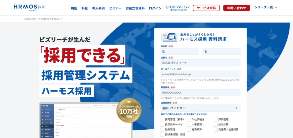 HRMOS採用はビズリーチ社が手がける、採用管理システム(ATS)です。応募経路や媒体別の効果測定、選考進捗のダッシュボード管理など、採用活動全体の可視化や分析面に強みがあります。Indeedとの連携も可能で、複数職種・雇用形態の管理を一元化できるため、パート・アルバイト採用はもちろん中途・新卒採用まで、幅広い募集形態に対応している採用管理システム(ATS)です。